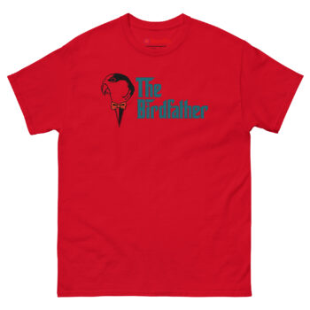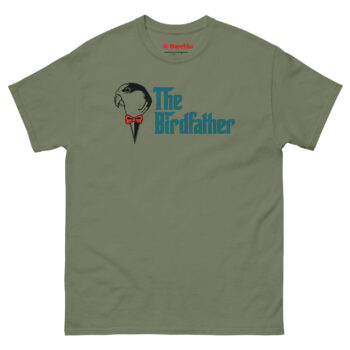 Our graphic designer created this concept after babysitting his sister’s cockatiel and noticing how the bird strutted around its cage like it owned the place. He kept thinking the bird acted just like a movie boss making demands. Thus, The Birdfather T Shirt was born. The illustration shows a detailed cockatiel profile with a crisp red bow tie, staring out with that confident look bird owners know too well. Moreover, the vintage green lettering mirrors the iconic film logo without copying it exactly. You can wear this to a movie night, a bird rescue volunteer event, or just while cleaning your parrot’s cage at home. Furthermore, it starts conversations with both Godfather fans and fellow bird parents at the pet store. The The Birdfather T Shirt design respects classic cinema while celebrating the quirky personality of cockatiels and parrots. Ultimately, it proves that being a bird dad is serious business worth celebrating. Wearing this shows you rule your roost with style and a sense of humor.