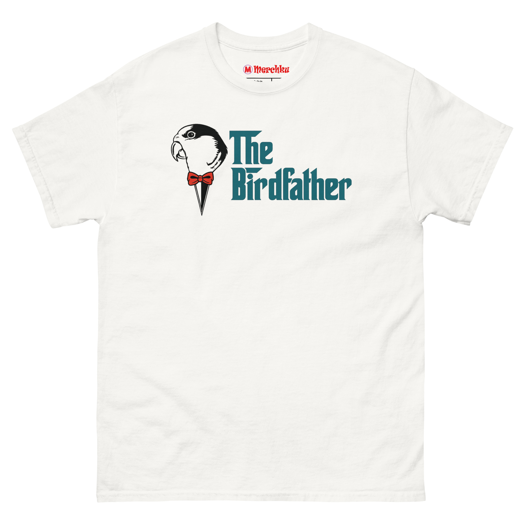 The Birdfather T Shirt features a cockatiel wearing a red bow tie next to bold green lettering that spoofs a famous mafia movie logo. It combines classic film nostalgia with pet owner humor on a soft cotton tee. Therefore, it fits anyone who loves both old movies and their feathered pets.