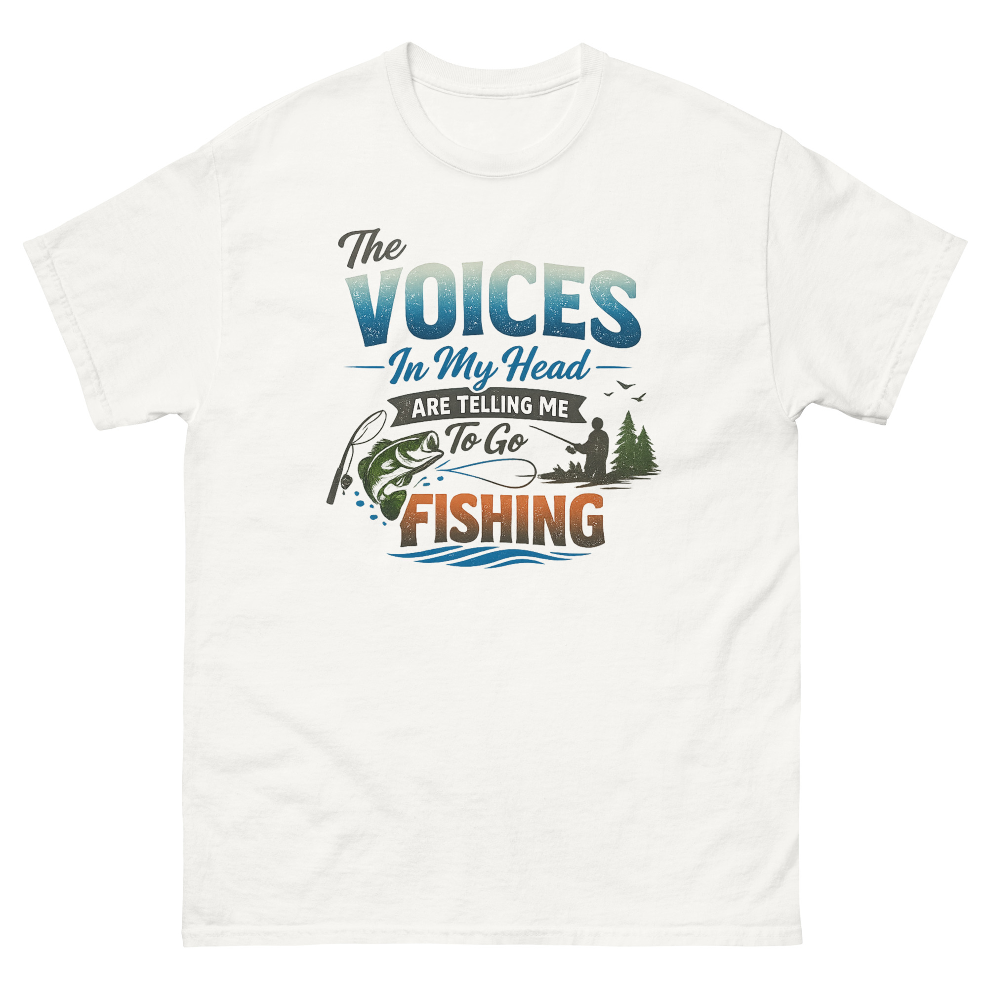 The Voices In My Head Are Telling Me To Go Fishing T Shirt – Angler Obsession Humor Tee