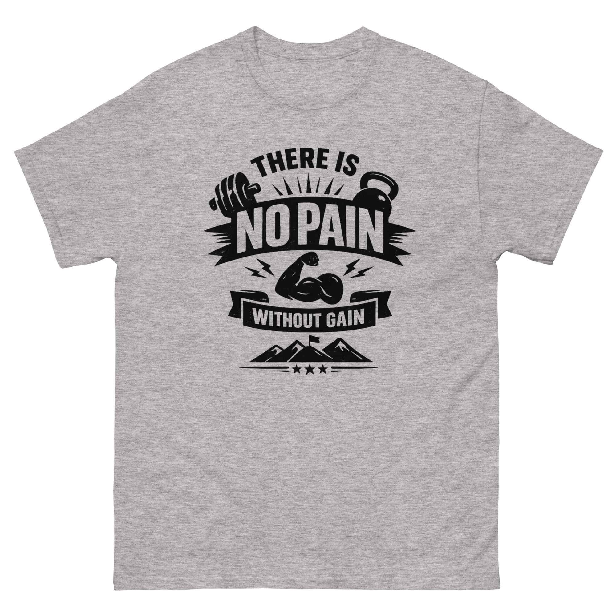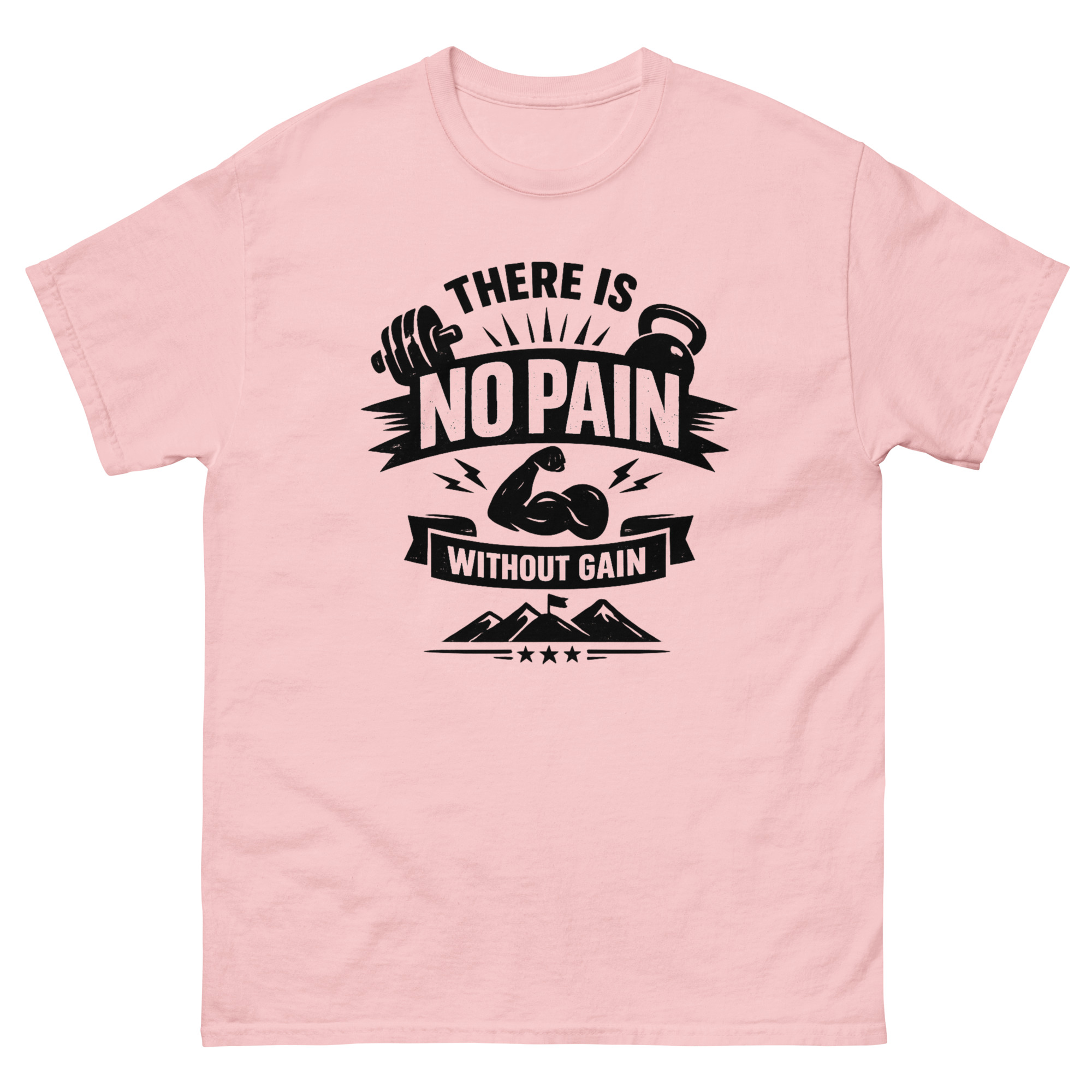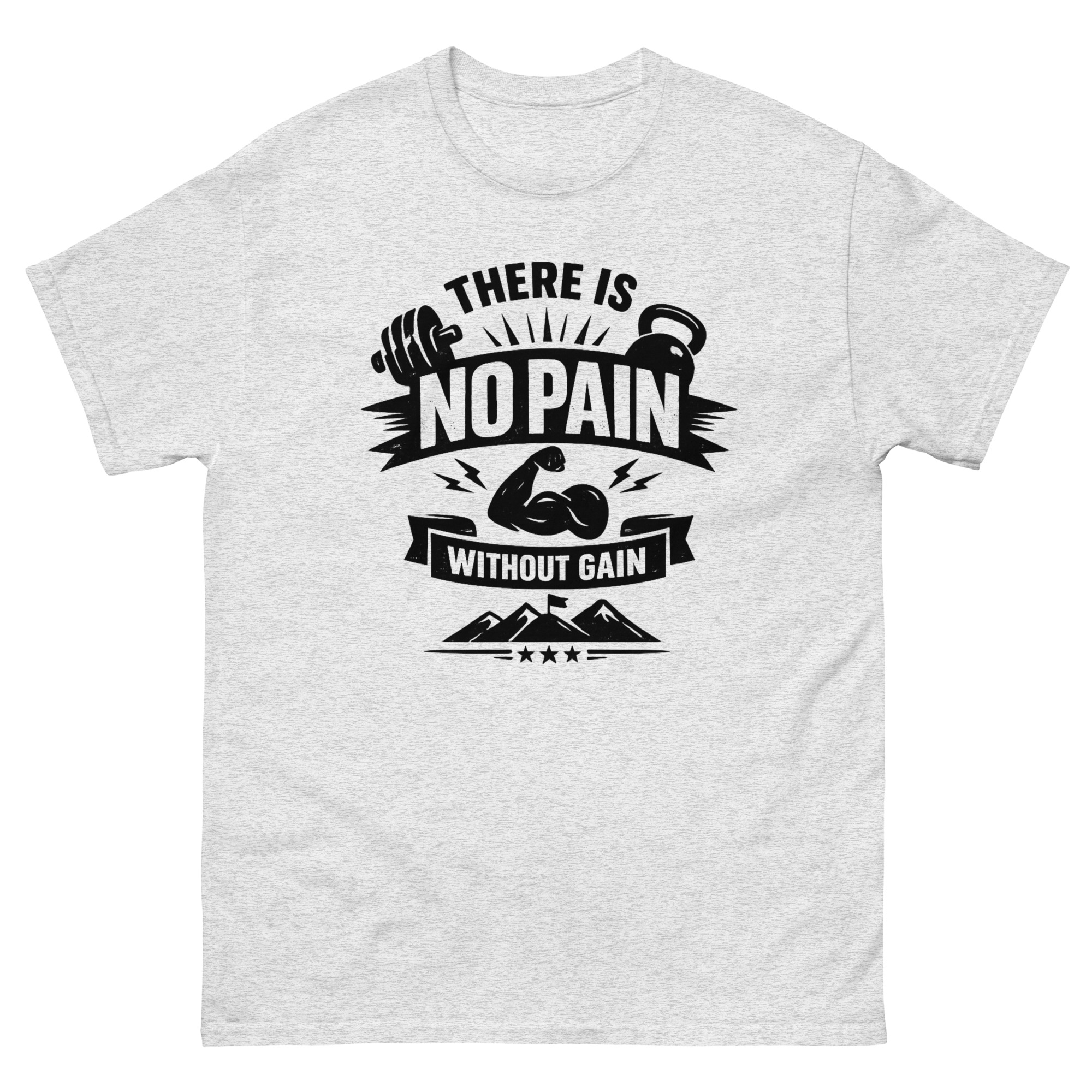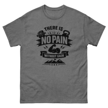 Fabric: There Is No Pain Without Gain T Shirt 100% cotton for softness and breathability.