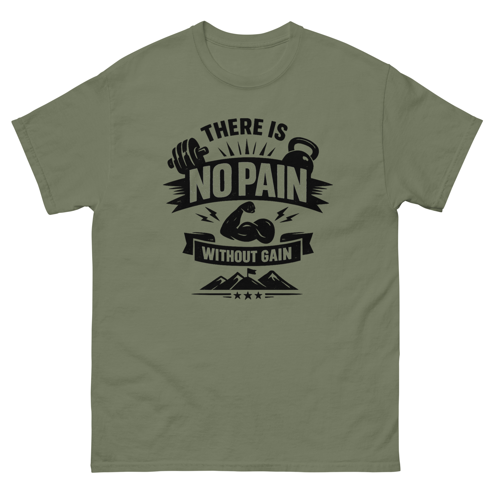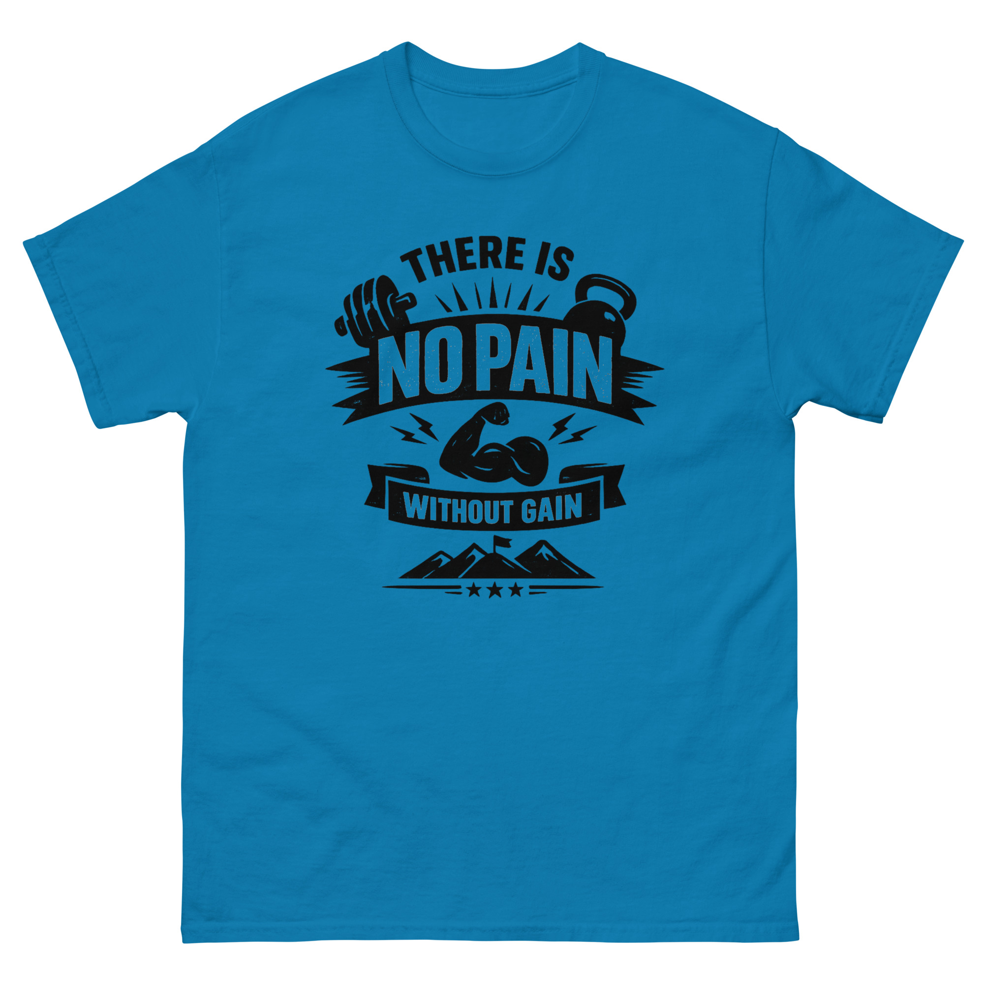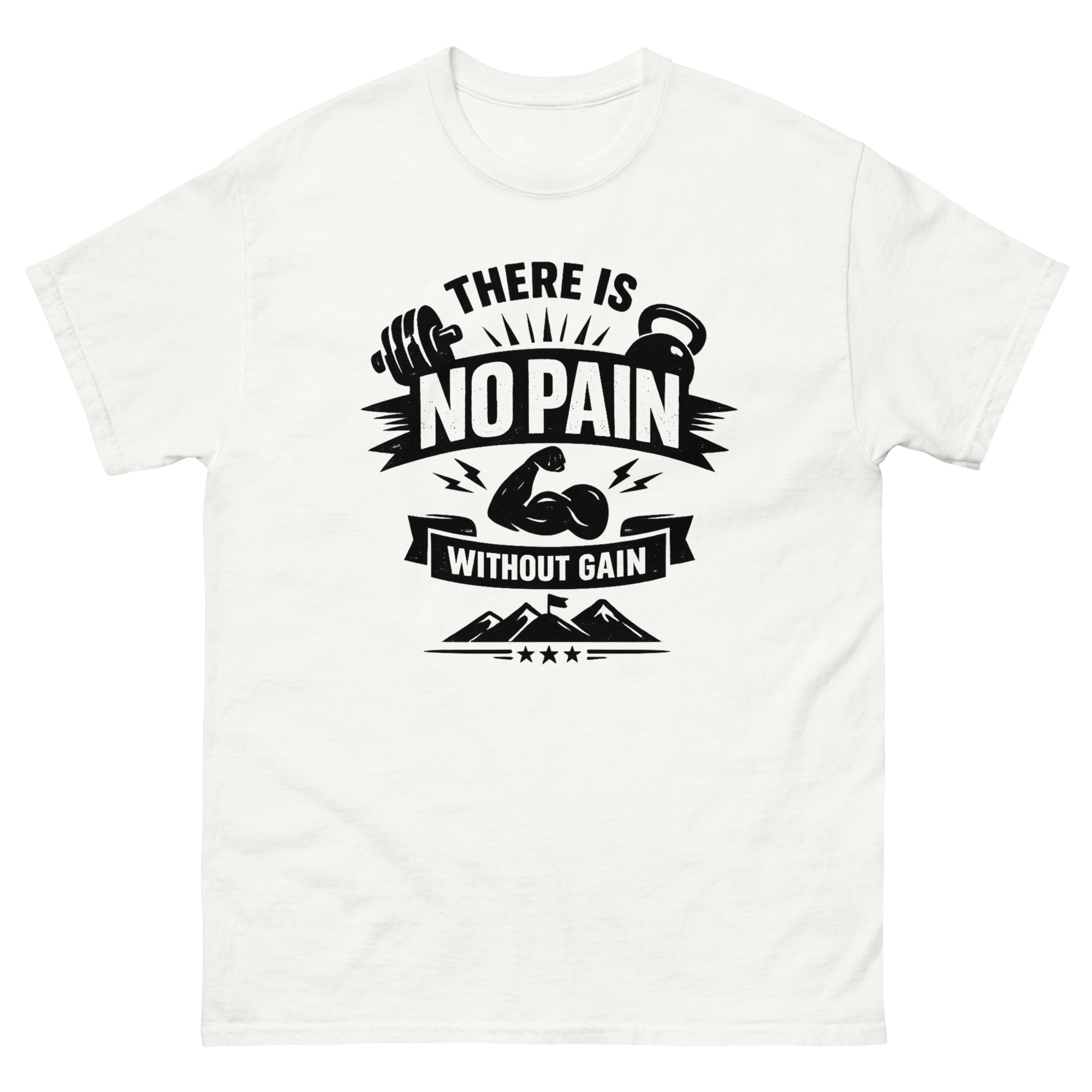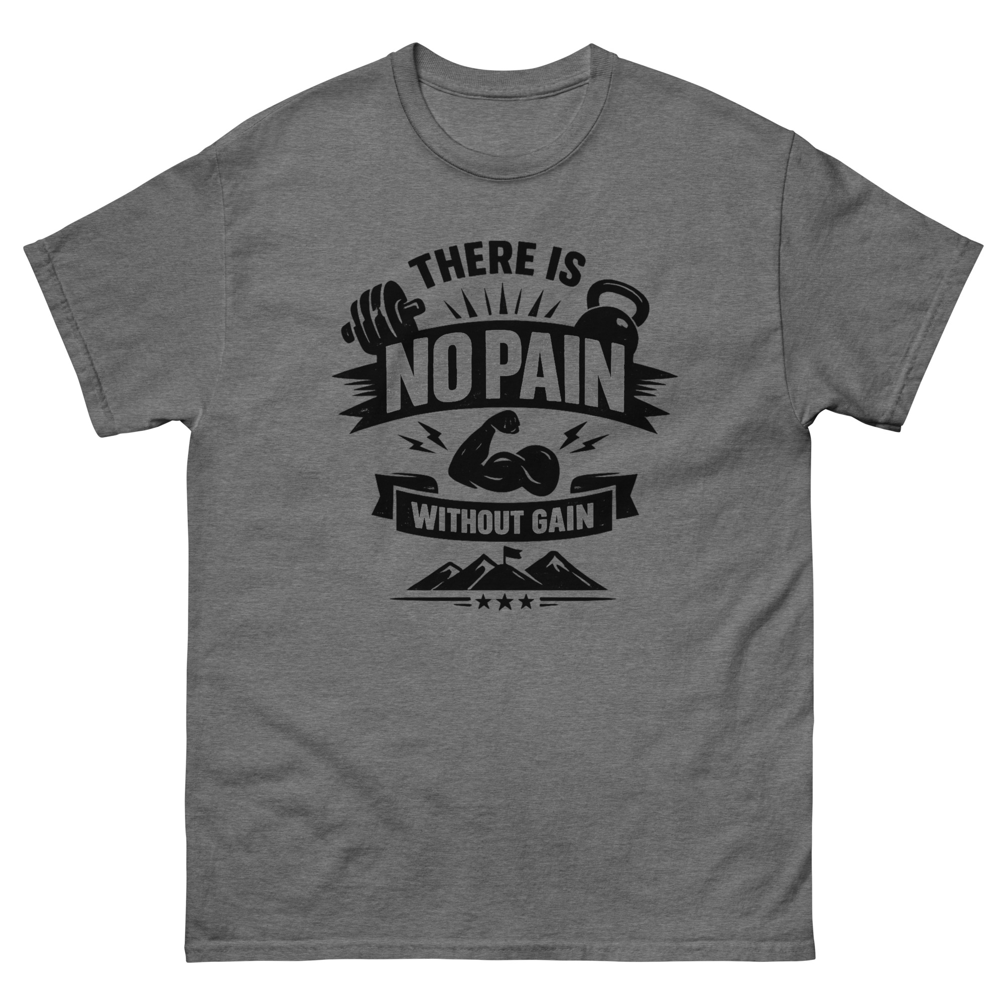 Fabric: There Is No Pain Without Gain T Shirt 100% cotton for softness and breathability.