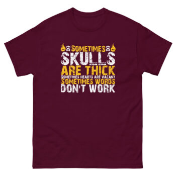 Edgy, honest, and a little sarcastic — this “Skulls Are Thick” t-shirt is for those who’ve had enough of dealing with the emotionally unavailable. A bold design that says what you’re thinking.