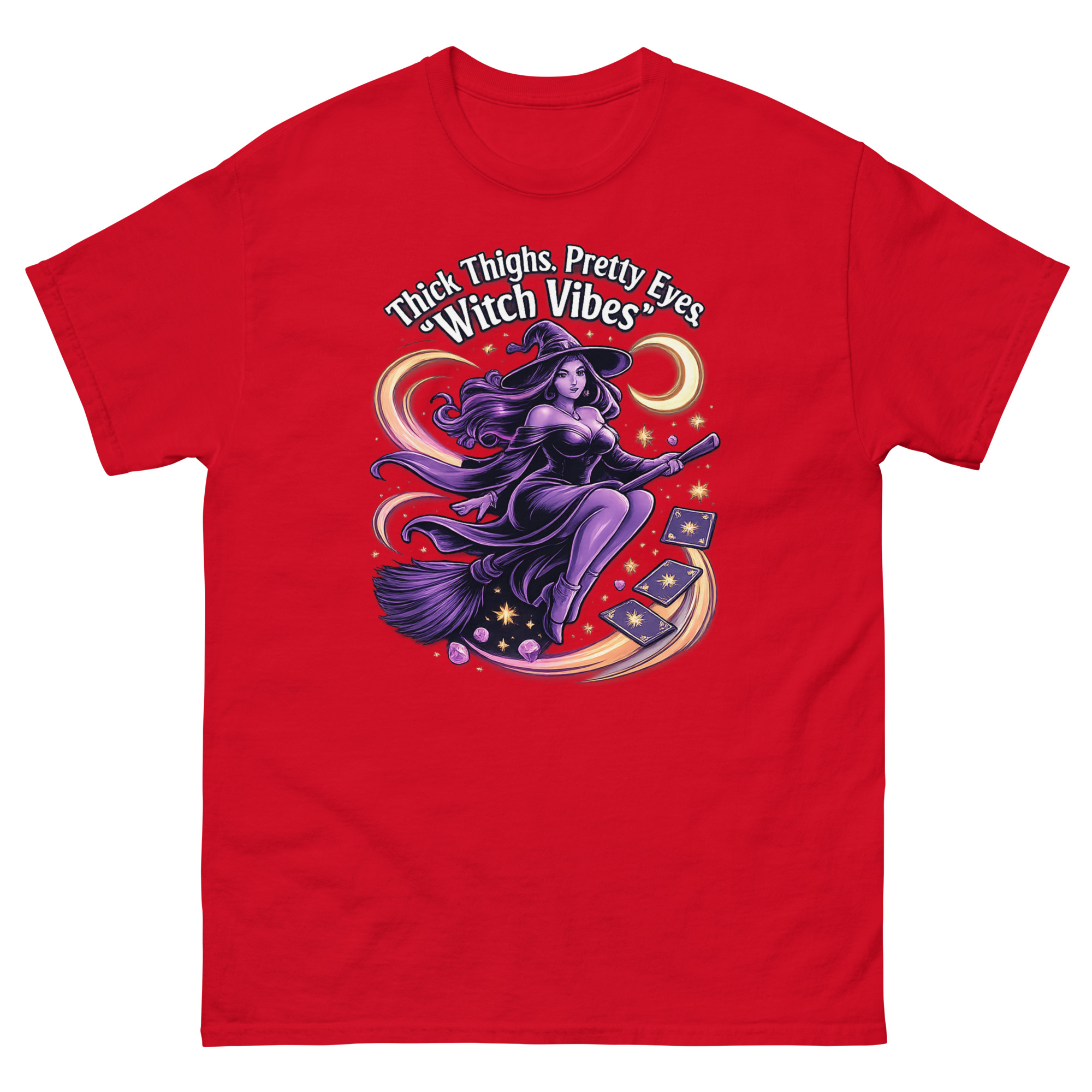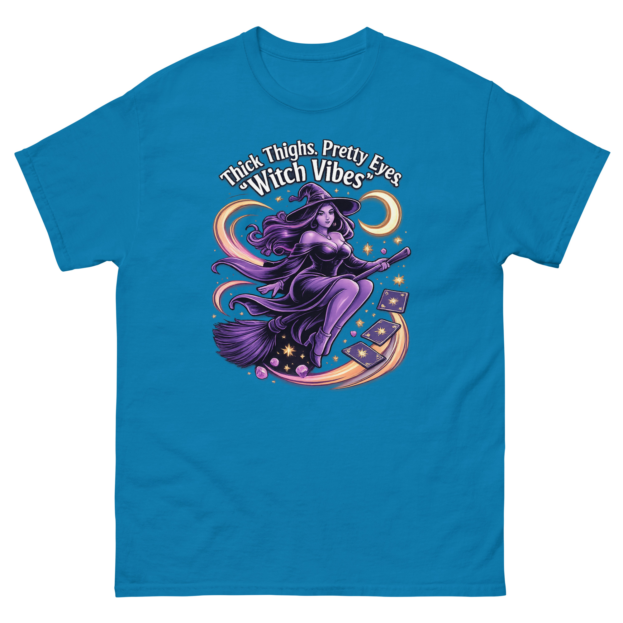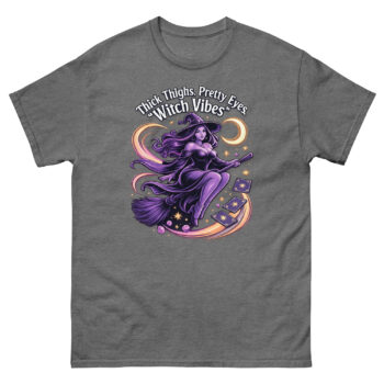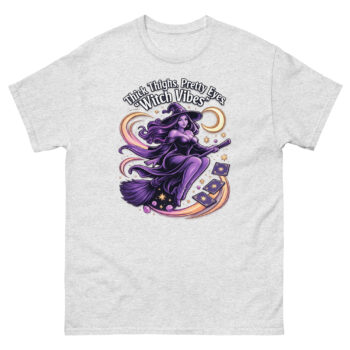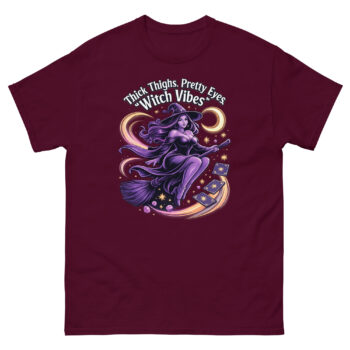 The Thick Thighs and Pretty Eyes T-Shirt is a bold, body-positive graphic tee designed for confident women who love playful fashion. Featuring a vibrant witch-themed design printed using eco-friendly DTG inks, this shirt blends comfort, style, and personality. It’s perfect for those who embrace their curves and want to express their vibe with flair.