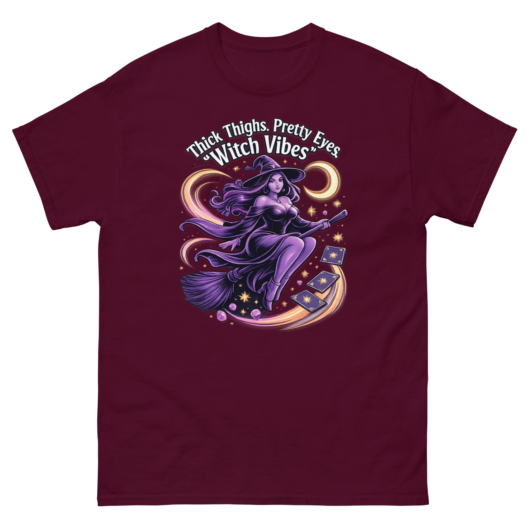 Pair this t-shirt with ripped jeans, leggings, or a denim skirt. Add boots and a leather jacket for a full witchy vibe, or keep it casual with sneakers and joggers. It’s versatile enough for everyday wear, yet eye-catching enough for special occasions.