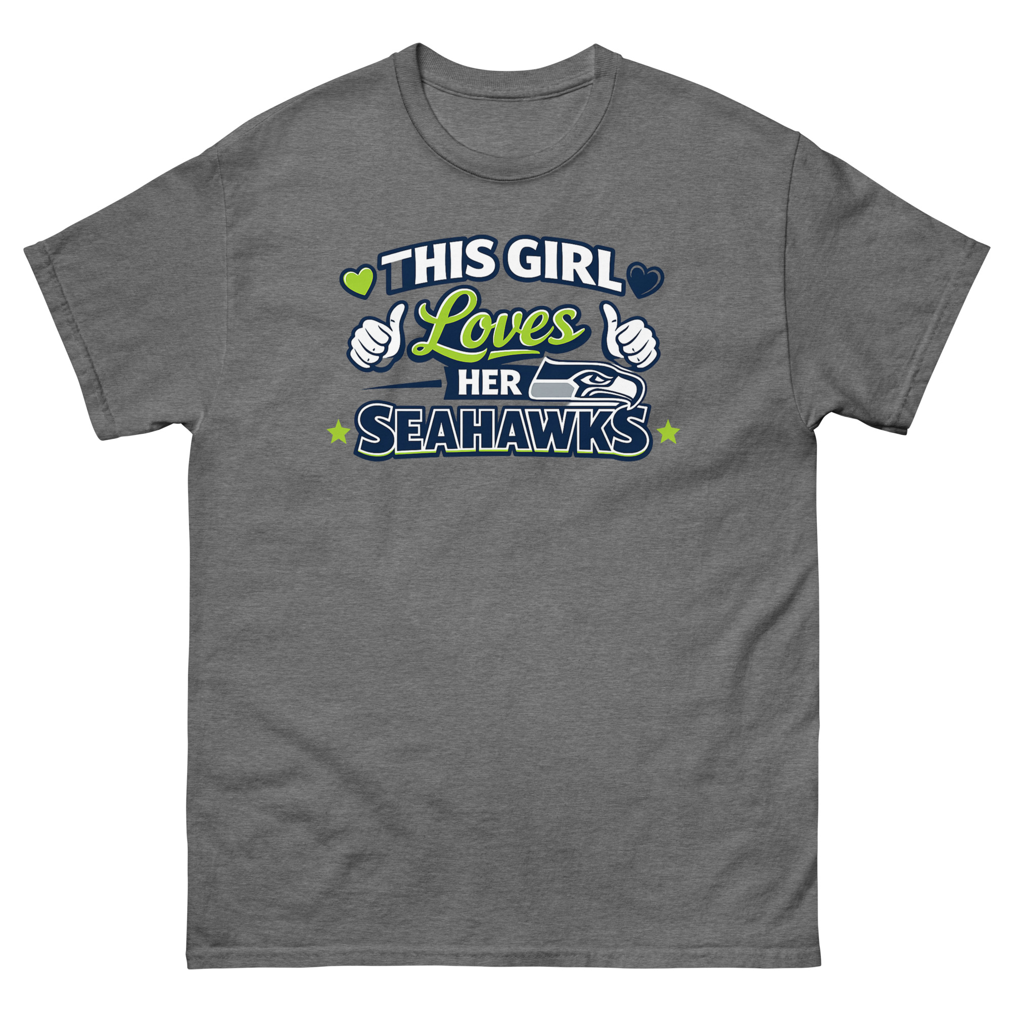 We created This Girl Loves Her Seahawks T Shirt to celebrate the incredible energy of the female fanbase. Our “Positive Fandom & Personalized Identity” philosophy focuses on creating more than generic fanwear. We wanted a shirt that captures the joy and community spirit of being a 12, while also reflecting personal style.