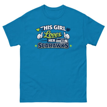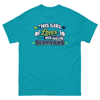 Show your Seattle pride with a shirt made for the female fan. The This Girl Loves Her Seahawks T Shirt is the perfect way to express your loyalty with energy and flair. Grab this essential piece of cute football gear today for yourself or as a winning gift for the 12 in your life.