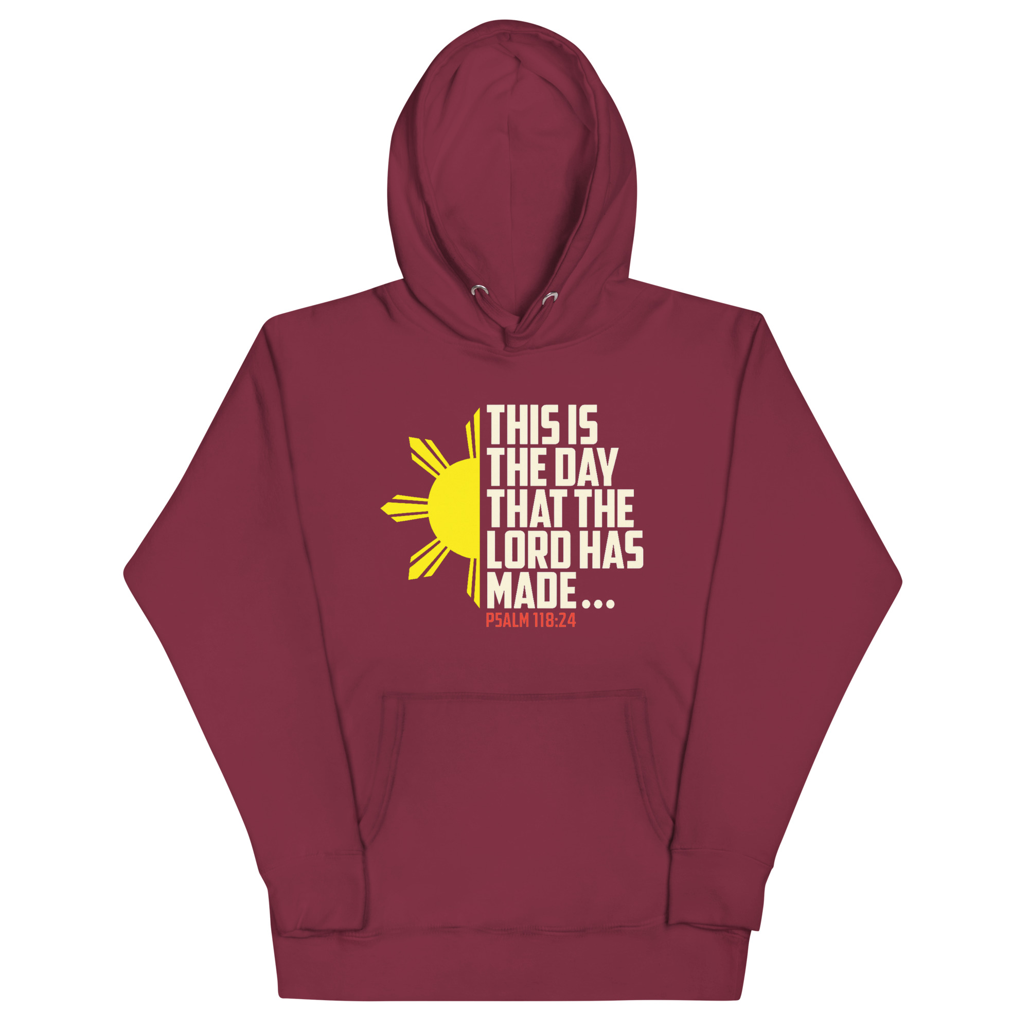 This Is the Day the Lord Has Made Hoodie is a unisex pullover designed for believers who want to wear their faith with pride. Featuring a bold sun graphic inspired by Filipino heritage and Psalm 118:24, this hoodie blends spiritual encouragement with cultural identity. It’s perfect for Christians looking for meaningful apparel that speaks to both style and purpose.