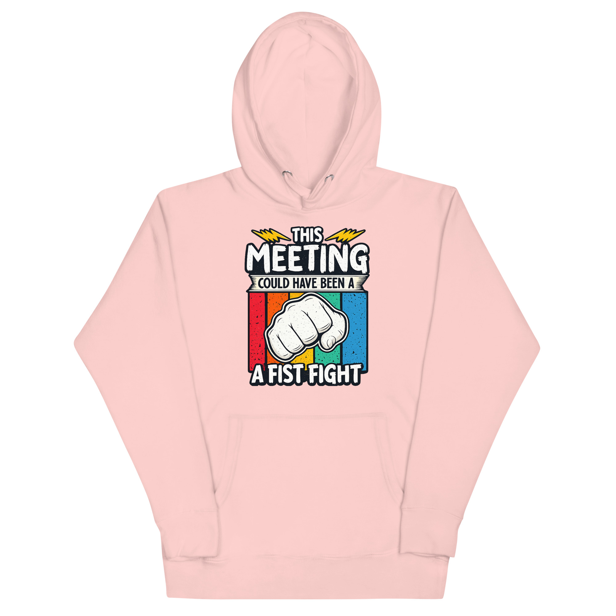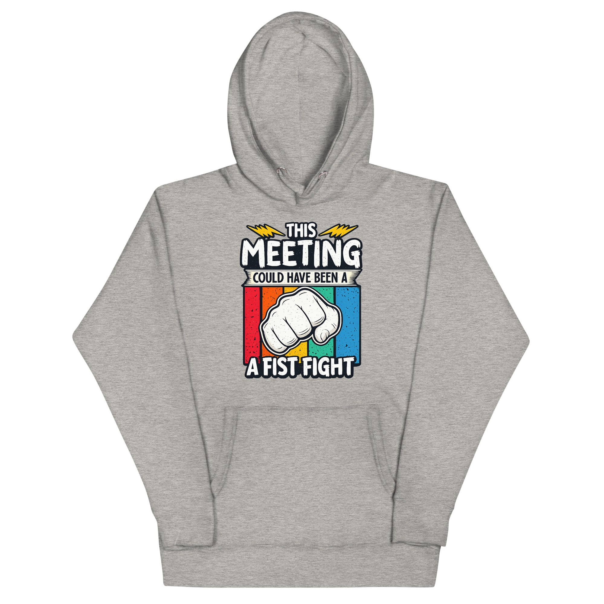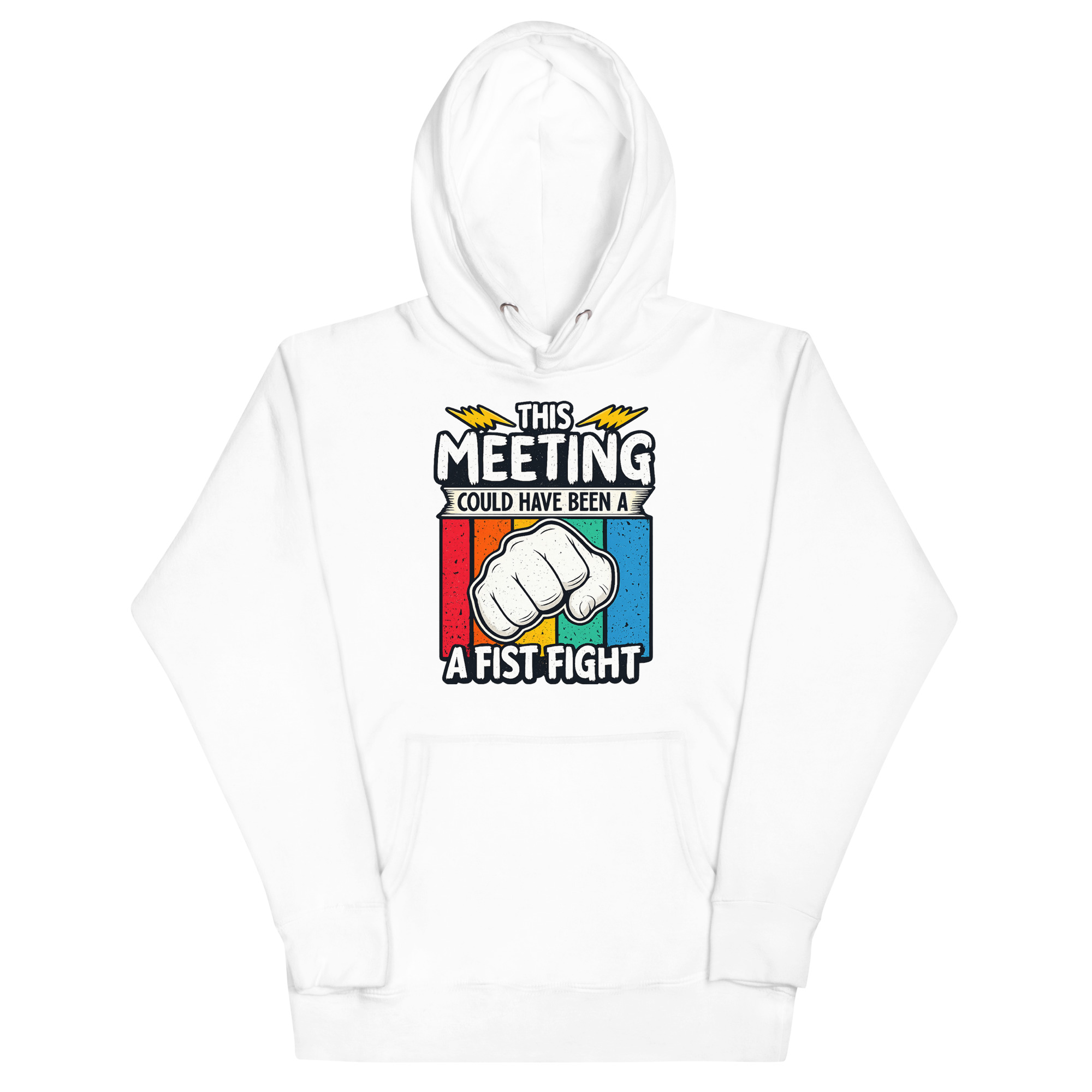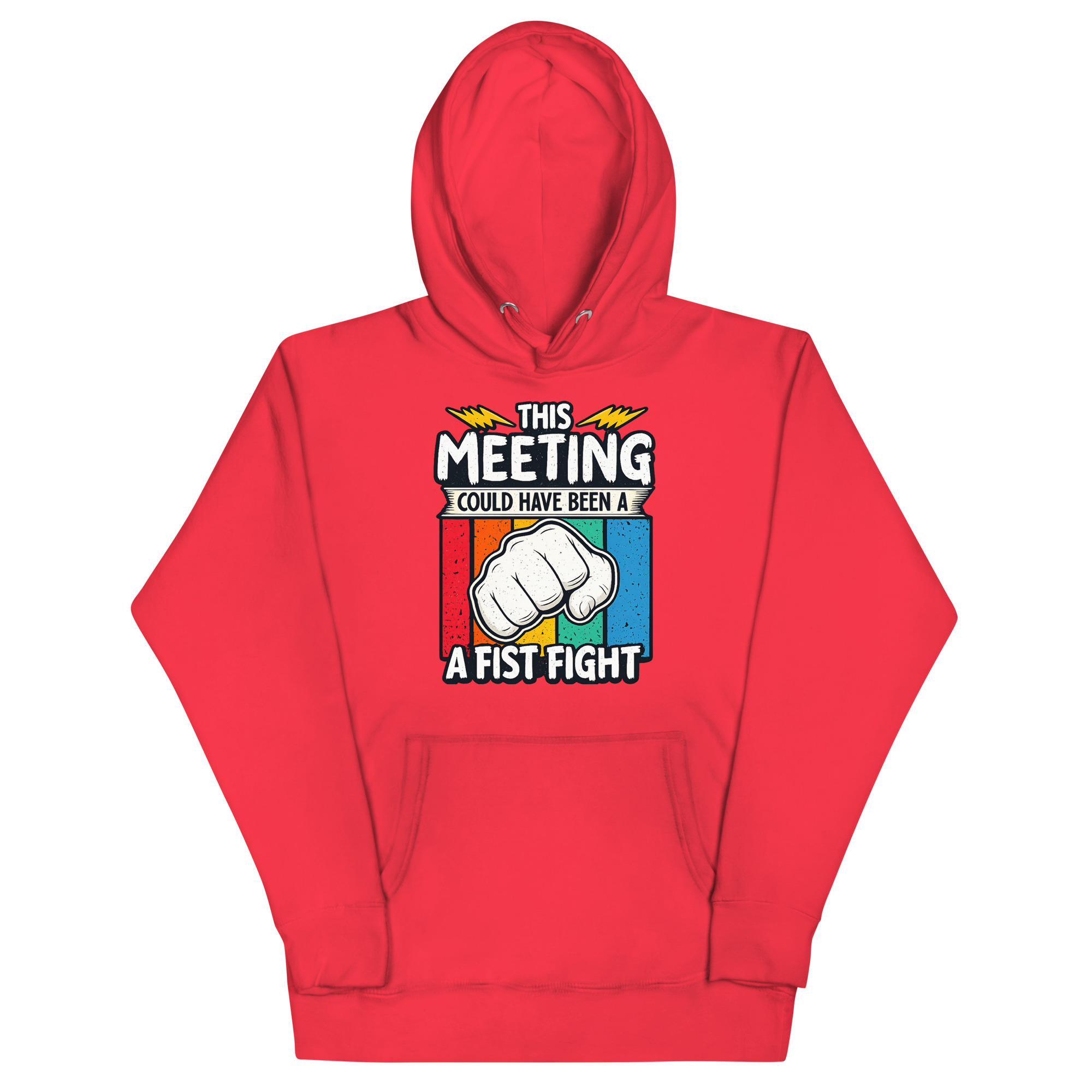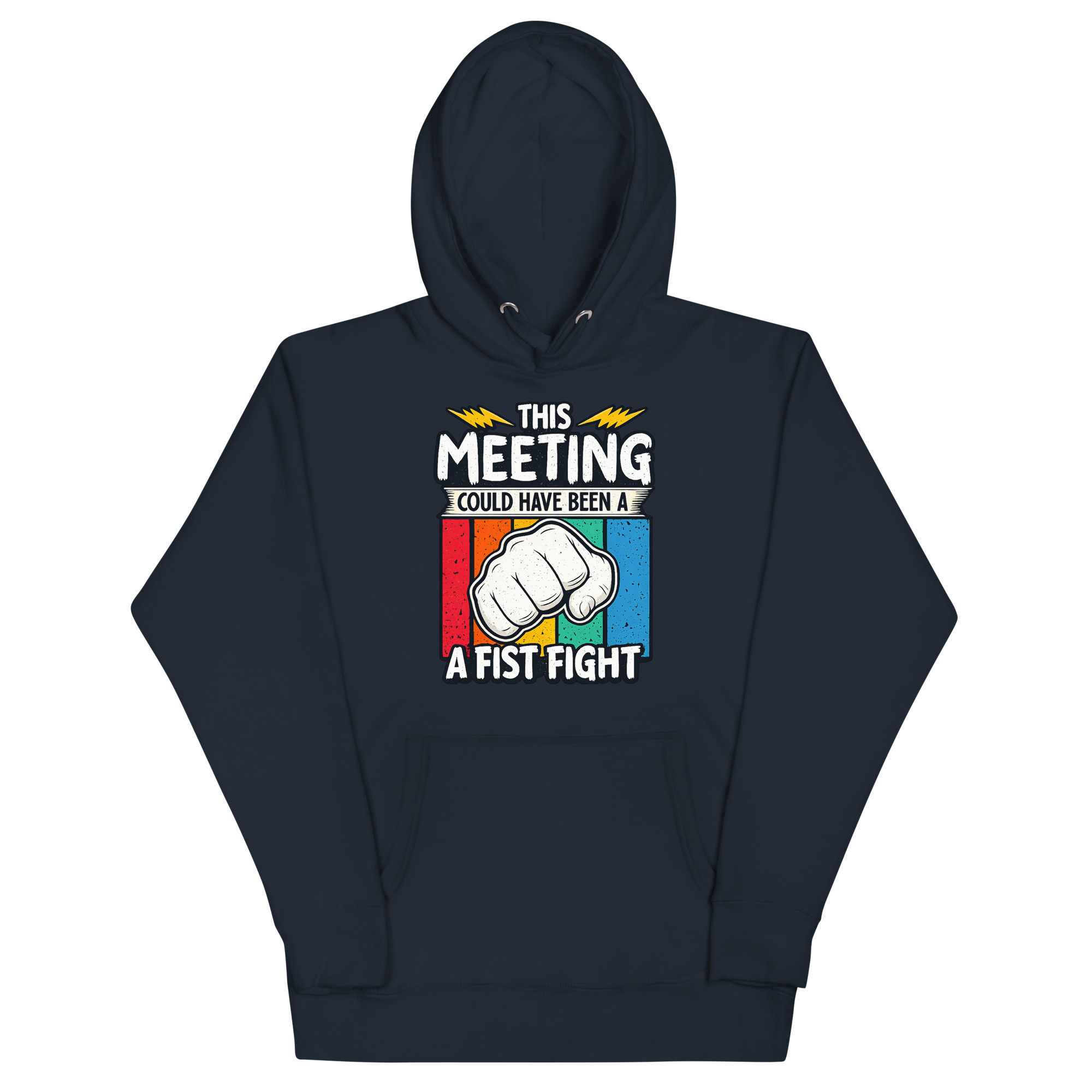 This This Meeting Could Have Been A Fist Fight Hoodie design was inspired by the universal frustration of sitting through meetings that could’ve been emails—or better yet, skipped entirely. The clenched fist and lightning bolts reflect the tension many feel but rarely express. It’s not about promoting conflict—it’s about calling out inefficiency with humor. Whether you’re a startup founder, a remote worker, or just someone who’s been in one too many Zoom calls, this hoodie speaks your truth without saying a word.