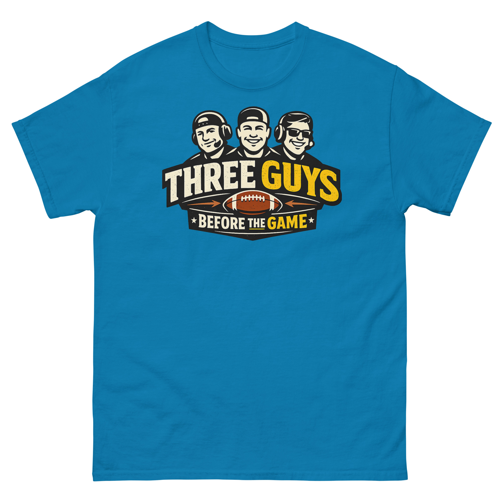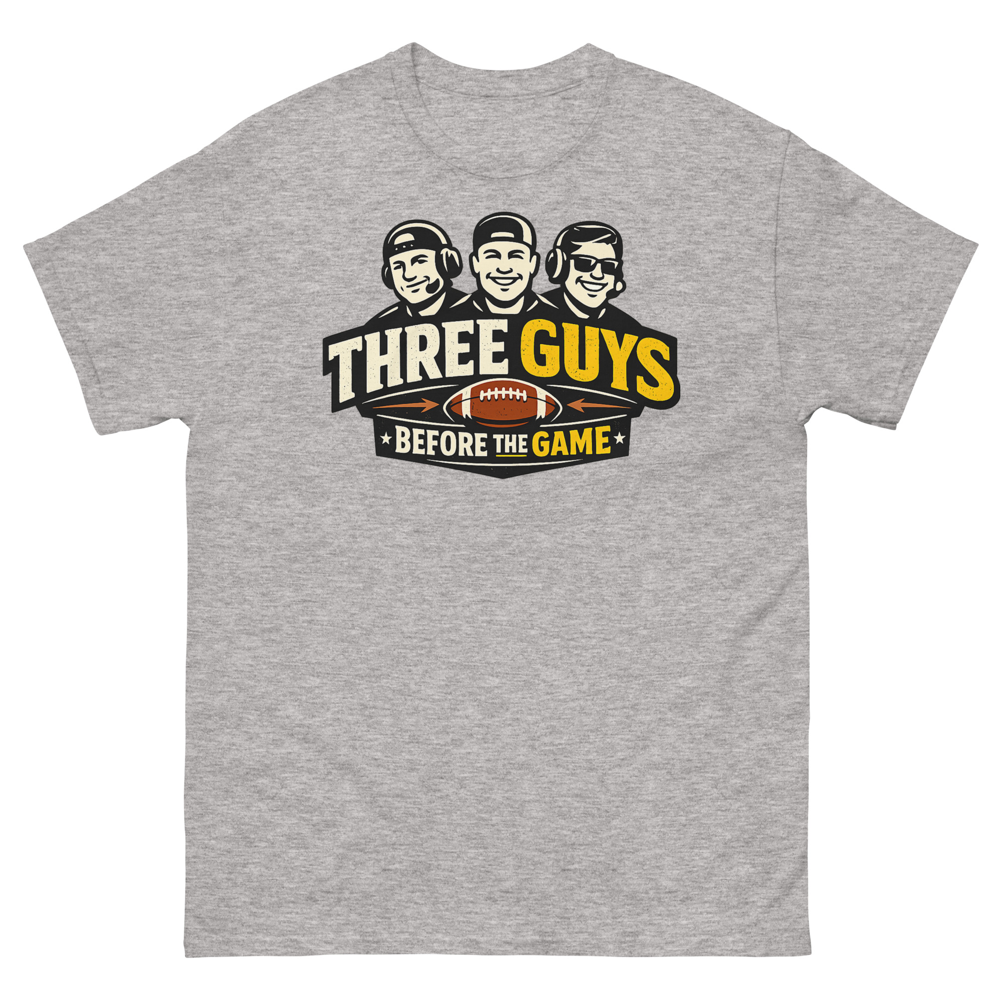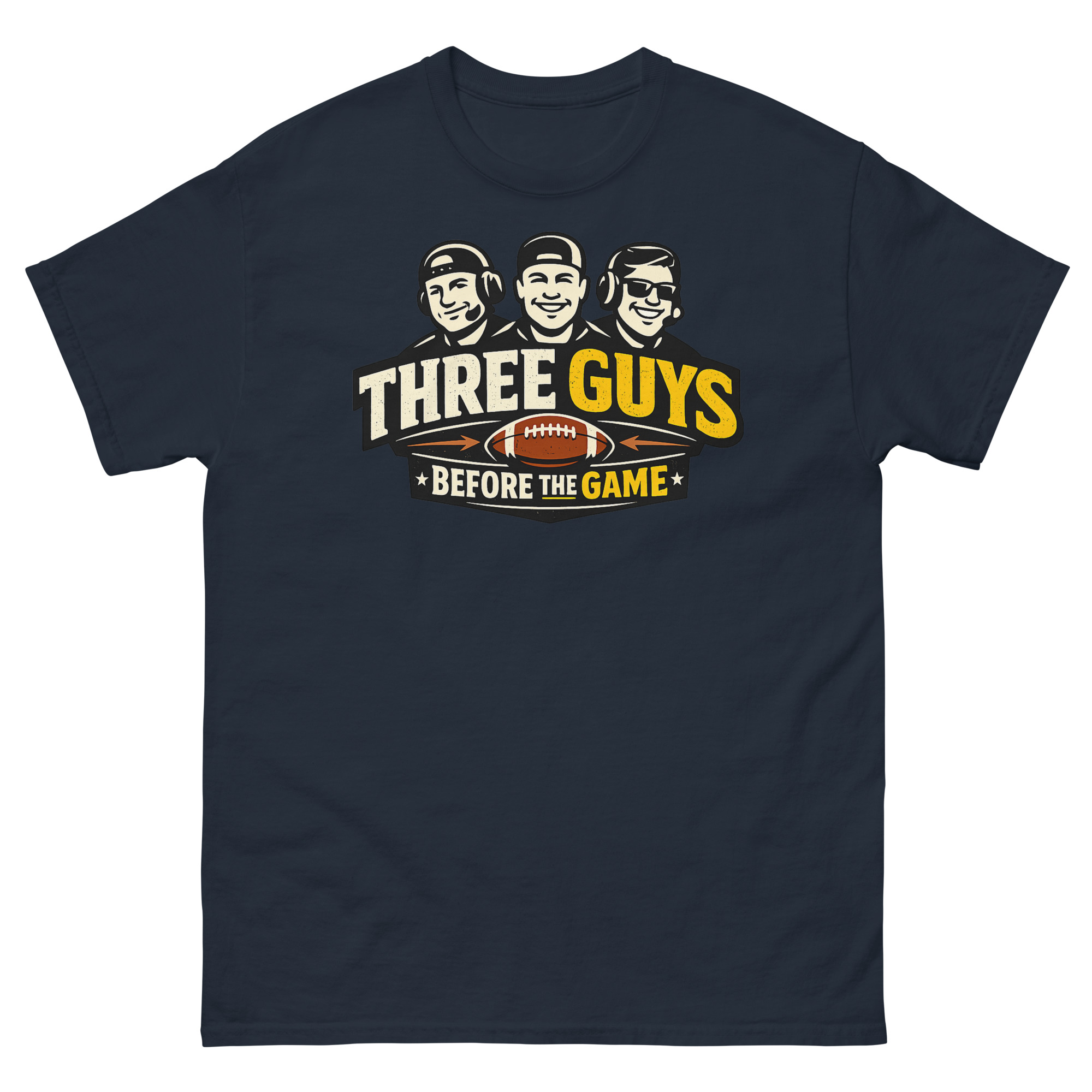 Ready to rep the pre-game tradition? This Three Guys Before the Game t shirt is the ultimate gear for the true enthusiast. It works perfectly as a graphic tee for college football enthusiasts or as the core of your vintage style clothing for Sunday football tailgates. Show your love for the best part of game day, the anticipation. Click ‘Add to Cart’ to secure your jersey.