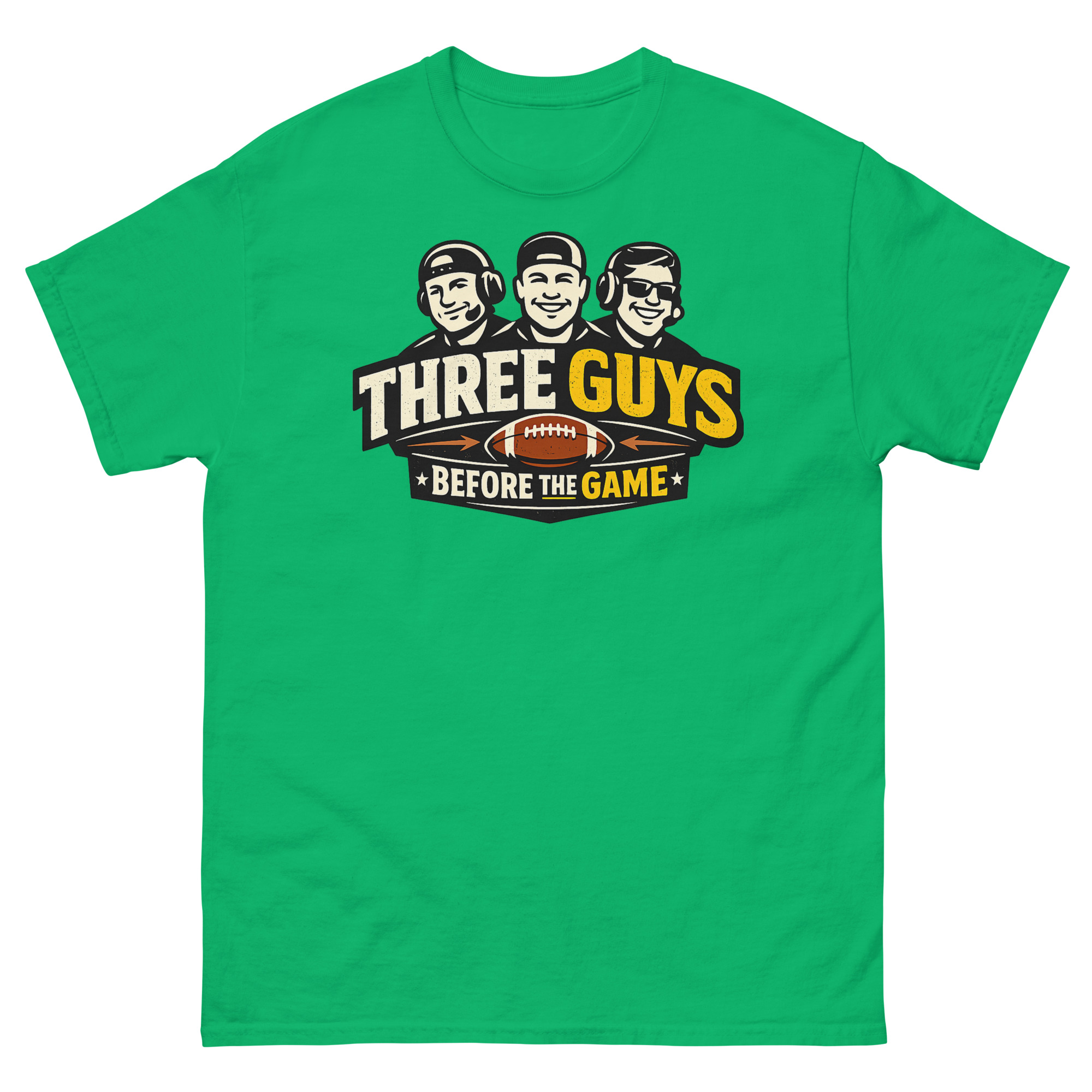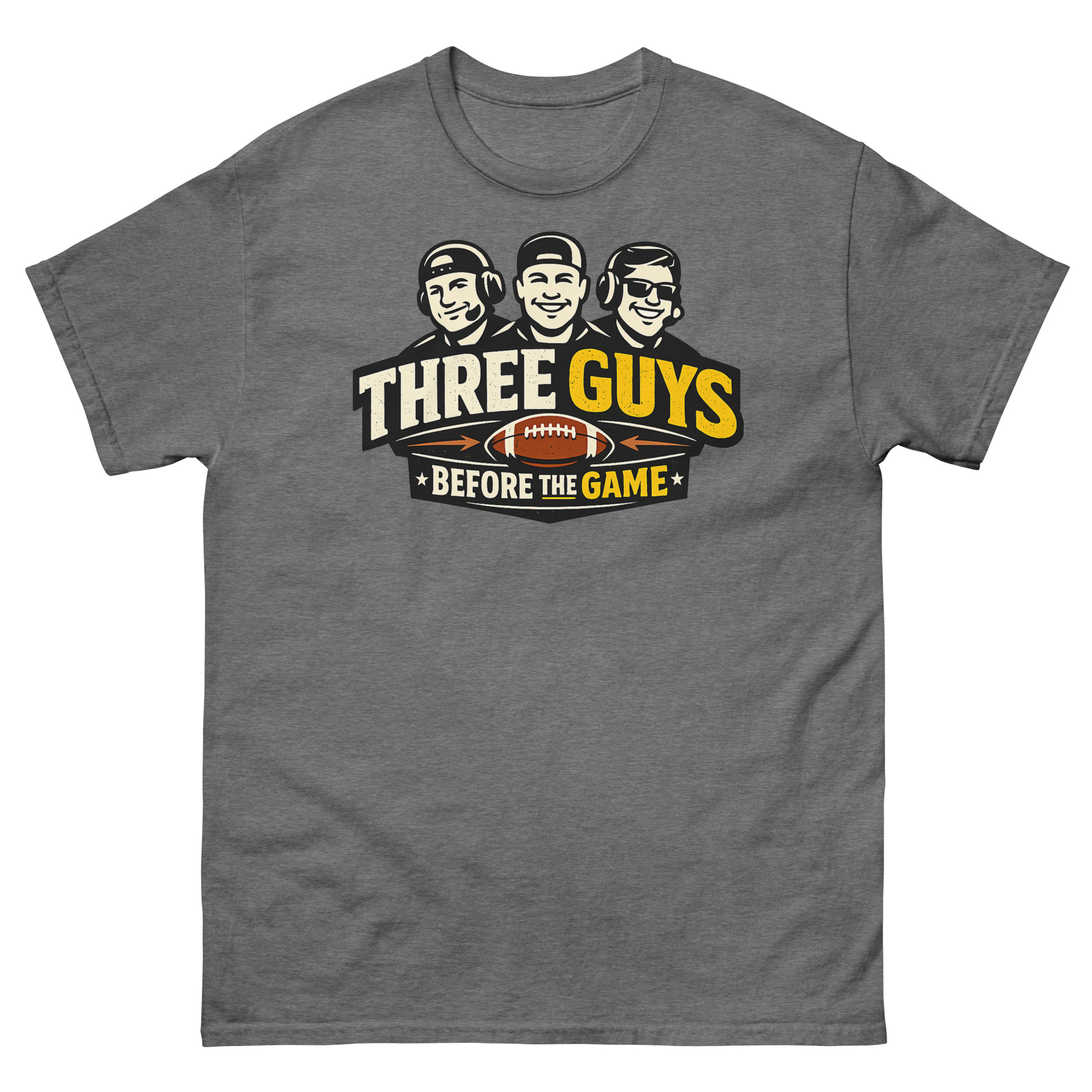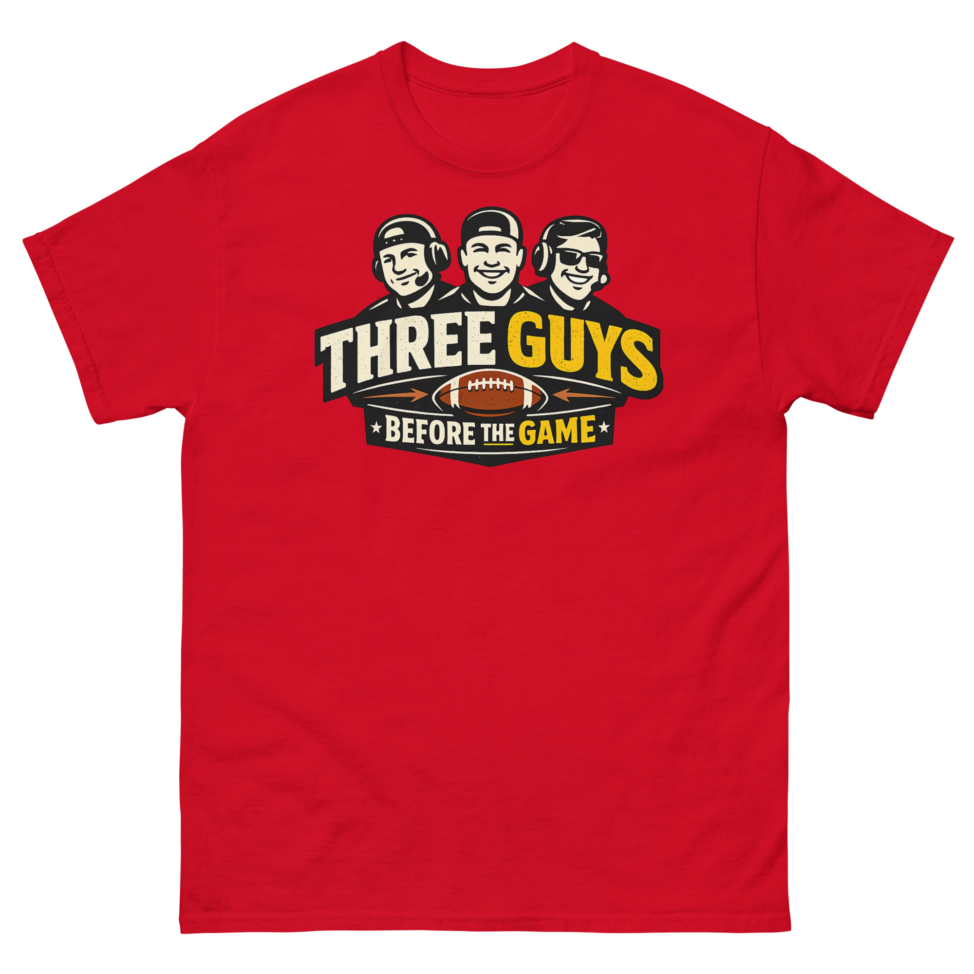 Ready to rep the pre-game tradition? This Three Guys Before the Game t shirt is the ultimate gear for the true enthusiast. It works perfectly as a graphic tee for college football enthusiasts or as the core of your vintage style clothing for Sunday football tailgates. Show your love for the best part of game day, the anticipation. Click ‘Add to Cart’ to secure your jersey.