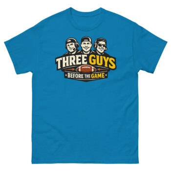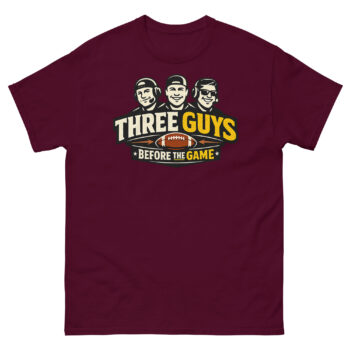 This Three Guys Before the Game T Shirt is a vintage-style tee for serious football fans. It stands out with its detailed, retro broadcast booth artwork that celebrates the pre-game hype. Simply put, it’s designed for anyone who lives for football Sundays and the expert analysis that comes with them.