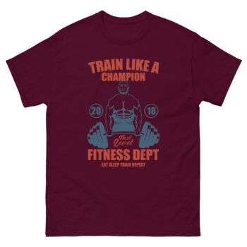 If you’re serious about lifting, the answer is yes. This isn’t just a shirt—it’s a statement of purpose. Whether you’re deadlifting 500 lbs or grinding through a brutal hypertrophy session, the Train Like a Champion Fitness Dept T-Shirt reminds you why you started.