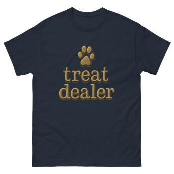 Let’s be honest—if your pockets are full of dog treats and your heart is full of guilt when you don’t share them, this “Treat Dealer” tee was made for you. Designed for the dog lovers, trainers, and proud enablers of the world, this shirt isn’t just apparel—it’s a badge of honor for anyone who spoils their pup rotten.