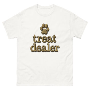 This Treat Dealer tee isn’t just apparel—it’s a lifestyle for every dog lover who’s ever been wrapped around a paw.