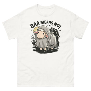 Baa Means No T Shirt – Cute Sheep In a Ghost Costume Graphic