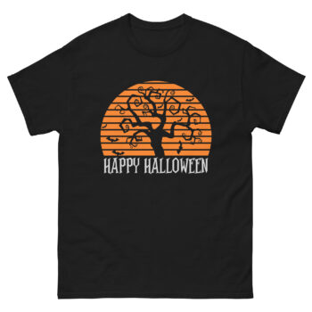 Haunted Tree Happy Halloween T-Shirt – Spooky Sunset Tee