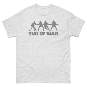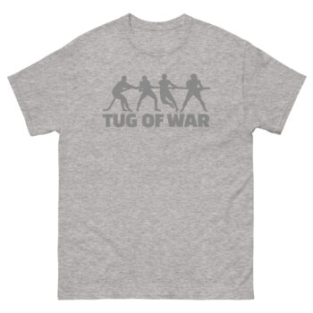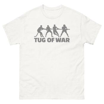 Beneath the graphic, the words “TUG OF WAR” stand in bold, clean letters. This design isn’t loud or flashy. Instead, it’s confident and timeless. It’s for the person who understands that real strength comes from teamwork and resilience. As a result, this shirt becomes a piece of team spirit apparel that focuses on the core of competition: unity through opposition.