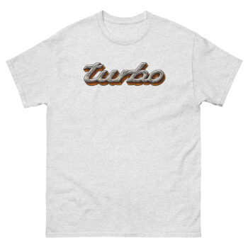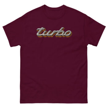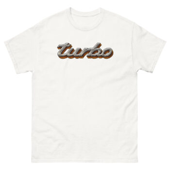 Feel the power of speed and nostalgia with this Turbo Tee Shirt, designed for those who live life in the fast lane. Featuring a metallic chrome-style “Turbo” logo, this shirt captures the energy of classic car culture and performance passion, perfect for gearheads, racers, and auto enthusiasts who love the sound of boost.