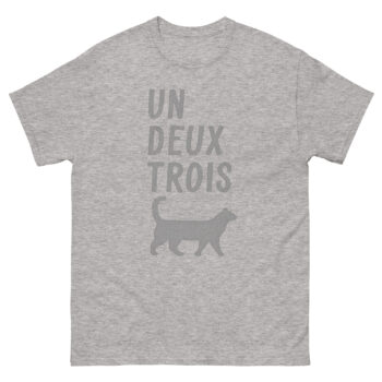 Let’s be honest: most cat shirts just state the obvious. “I love cats.” Yawn. Your cat deserves better, and so do you. Imagine a design that doesn’t just say you’re a cat lover—it shows you have a sense of humor and a dash of international flair. Enter our Un Deux Trois Cat T-Shirt, the ultimate funny French cat shirt for those who appreciate clever wit.