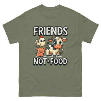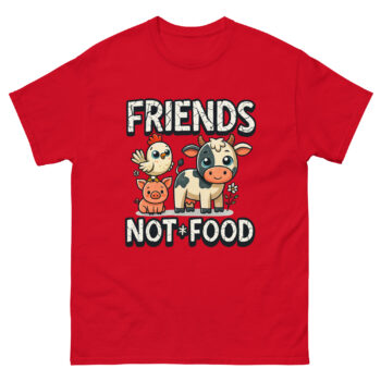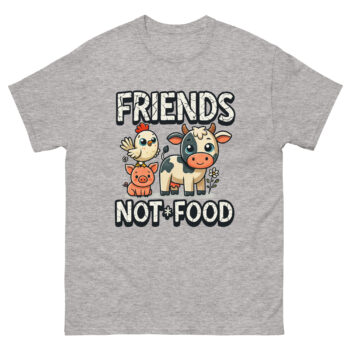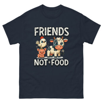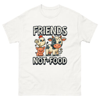 Have you ever locked eyes with a cow and seen a gentle soul, or heard a pig’s happy grunt and felt a connection? For many of us, these animals aren’t just part of a system; they’re potential friends. This is the core idea behind our Vegan T Shirt Friends Not Food. It’s more than just a piece of clothing; it’s a wearable conversation about compassion, designed for anyone who believes in kindness. If you’re looking for a vegan activism shirt for animal lovers that’s both powerful and playful, you’ve found it.