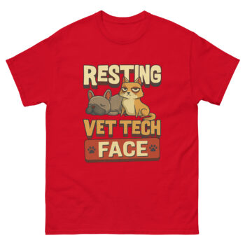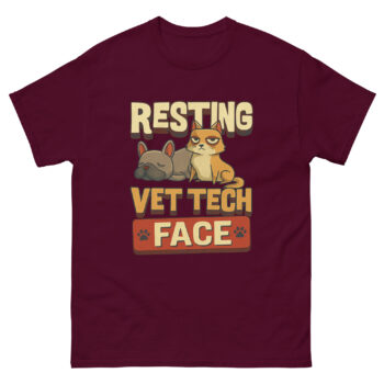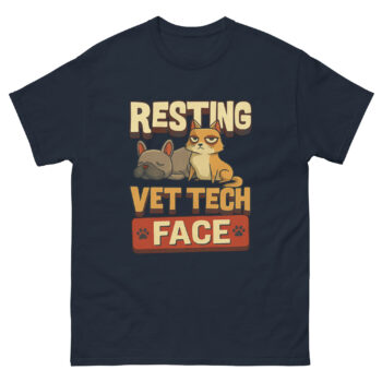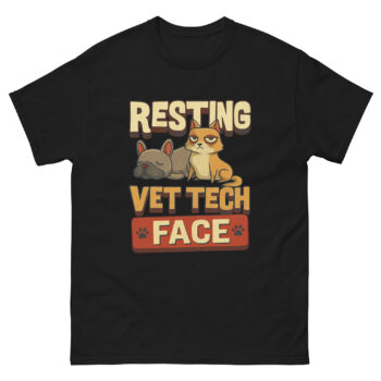 Walk into any bustling animal clinic and you’ll see them: the veterinary technicians. They’re simultaneously holding a fractious cat, calculating drug dosages, and reassuring a nervous pet owner. Their hands are busy, but their faces? Often, they display a masterpiece of composed neutrality. This isn’t boredom or annoyance; it’s a professional superpower. We argue that this famed “Resting Vet Tech Face” is the ultimate sign of a competent, unflappable professional managing the beautiful chaos of animal healthcare. This shirt isn’t just a gag; it’s a celebration of that crucial, unspoken skill.