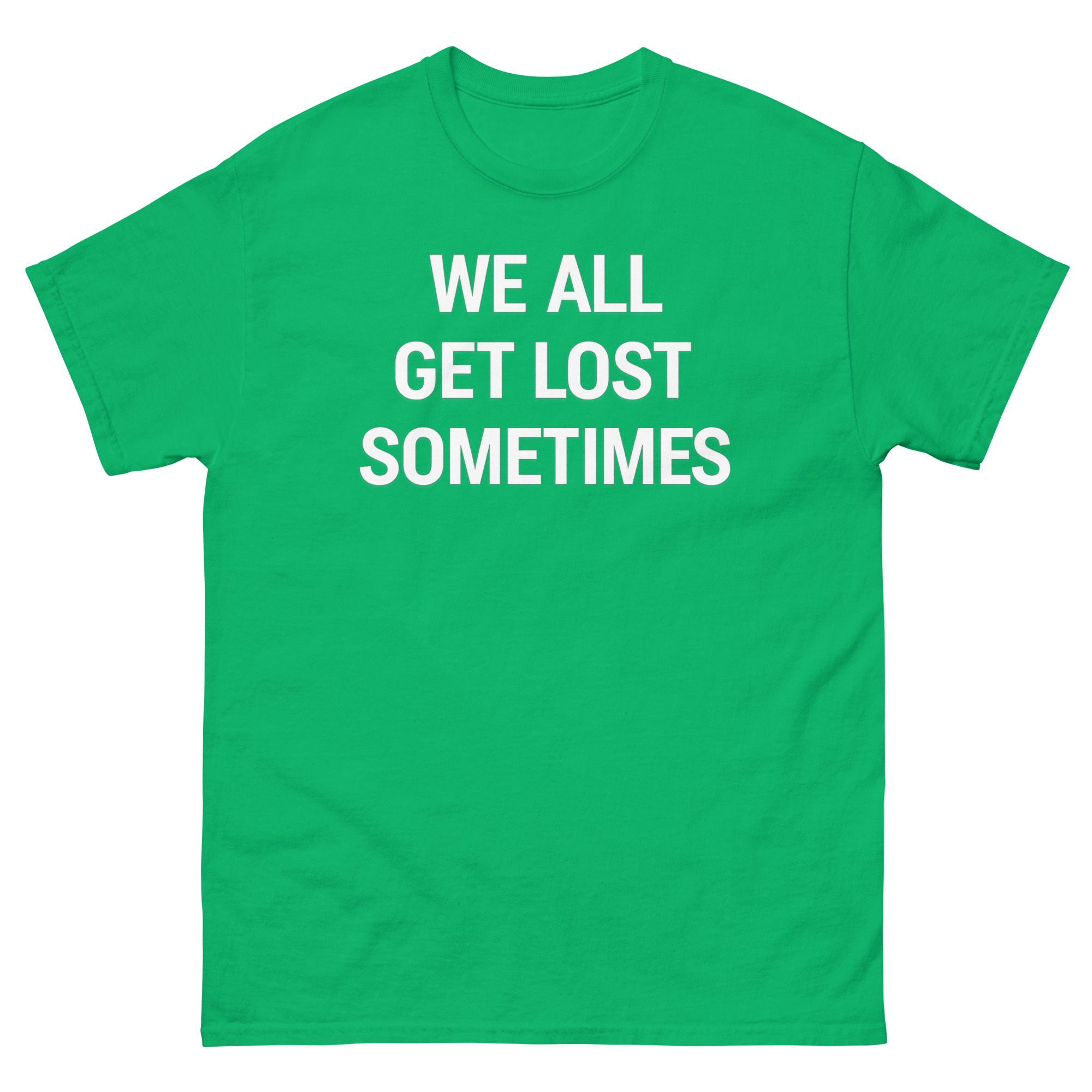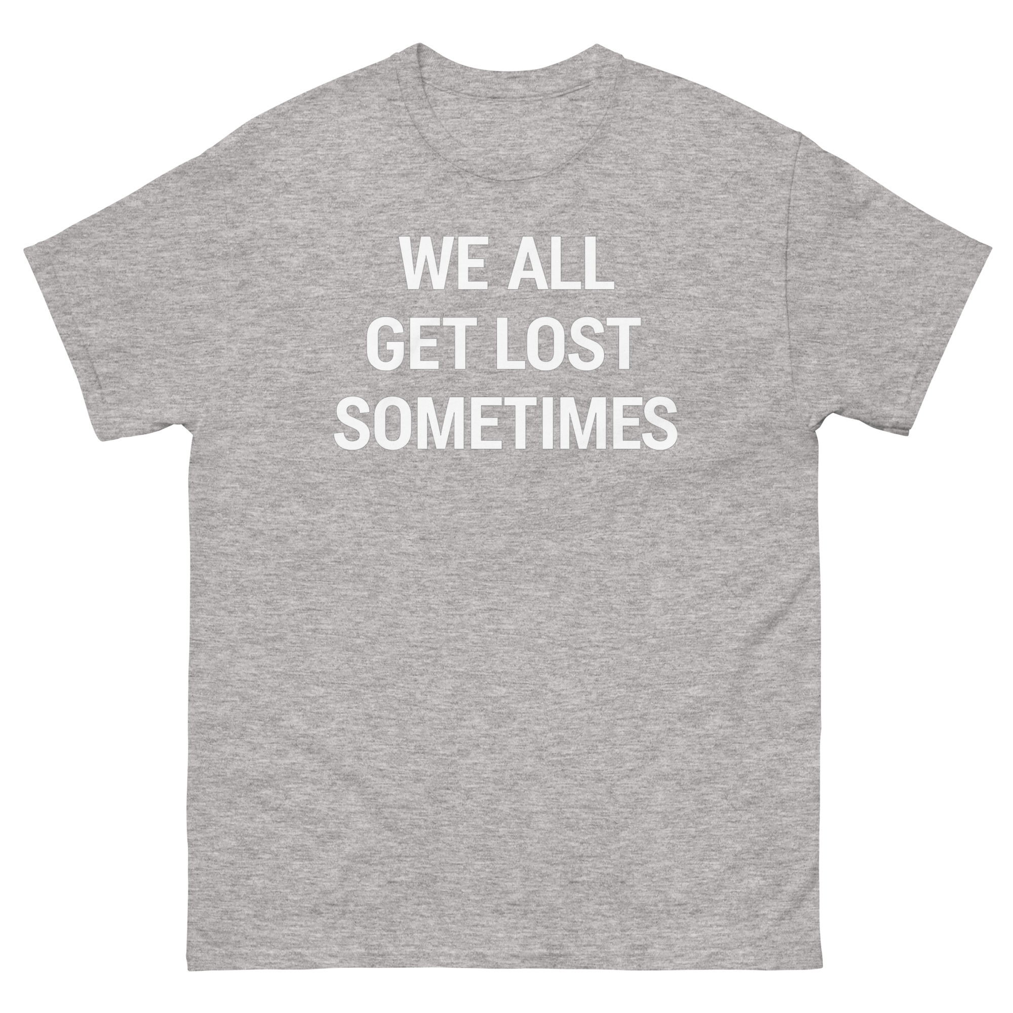 We created We All Get Lost Sometimes Shirt design to counter a common feeling: that being unsure means you’re alone. The phrase “We All Get Lost Sometimes” isn’t meant to be sad. Instead, it’s a reminder of shared humanity. The inspiration came from wanting to make a shirt that felt like a quiet nod of understanding between strangers.