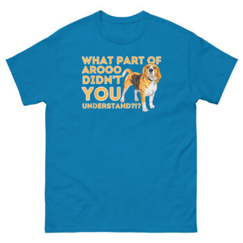 This What Part Didn’t You Understand Beagle T Shirt design came from a conversation with a friend whose Beagle once howled for twenty minutes straight because a squirrel dared to exist in the backyard. She threw her hands up and said, “What part of ‘quiet’ do you not understand?” And then it hit us, maybe the Beagle does understand. Maybe the Beagle is the one being perfectly clear, and we’re the ones failing the communication test. The design flips the script. A painterly tricolor Beagle stands alert, expression slightly stubborn, as if to say “I’ve been telling you all along.” Next to him, the text stacks bold and bright: “WHAT PART OF” in golden yellow, the massive “AROOO” as the undeniable centerpiece, followed by “DIDN’T YOU UNDERSTAND?!?” It’s a tribute to the vocal identity of the breed, the howls, the bays, the endless “conversations” that Beagle owners wouldn’t trade for anything.
