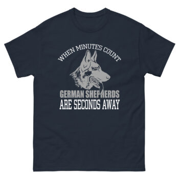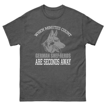 When every second matters, your German Shepherd is already on it. This “When Minutes Count, German Shepherds Are Seconds Away” t-shirt honors the speed, loyalty, and strength of one of the world’s most respected breeds.