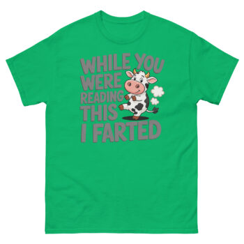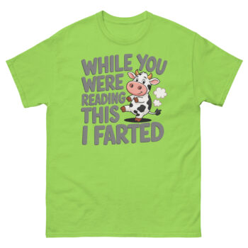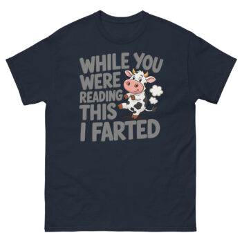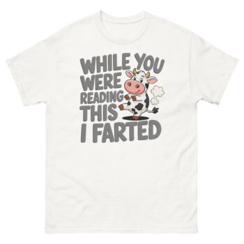 What if a T-shirt could tell a joke that happens right now? The “While You Were Reading This I Farted” Shirt does exactly that. This clever piece of text humor turns the simple act of reading into the punchline of a playful prank. Featuring a mischievous cartoon cow, this design delivers a universal bit of flatulence humor with undeniable charm. It’s the perfect blend of a visual gag and a witty observation, making it an unforgettable ice breaker clothing for parties and casual gatherings.