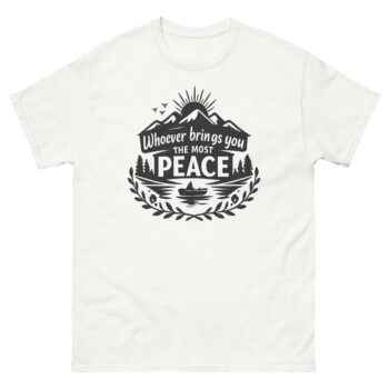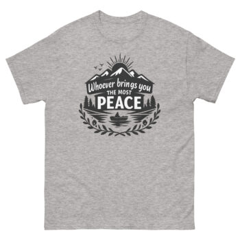 The whoever brings you the most peace shirt is more than just apparel, it’s a reminder of serenity. Inspired by the calm of mountain lakes and the warmth of meaningful relationships, this tee blends rustic design with modern comfort. Whether you’re searching for nature inspired mental health t-shirts, a vintage mountain graphic tee, or meaningful relationship quote gifts, this shirt delivers authenticity, quality, and emotional connection.