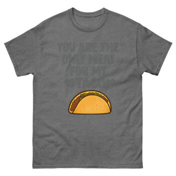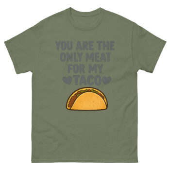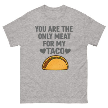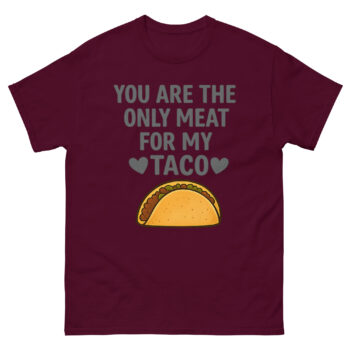 Ready to spice up your gift-giving or your own wardrobe with a hilarious declaration? The You Are The Only Meat For My Taco T Shirt is the ultimate funny quote apparel for food-loving couples. This sarcastic food pun clothing is perfect for casual dates, anniversary celebrations, or as a unique wedding shower gift. It makes a fantastic present for long-distance relationships where spicy humor bridges the miles. Don’t wait to deliver the laugh, click ‘Add to Cart’ now to get your cheeky romantic garment delivered quickly.