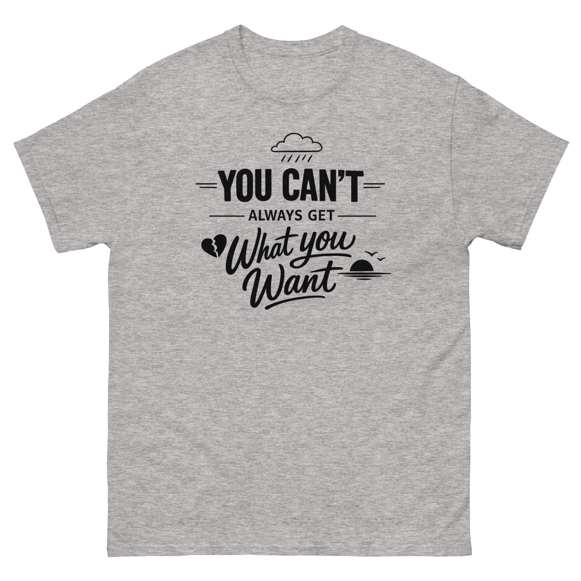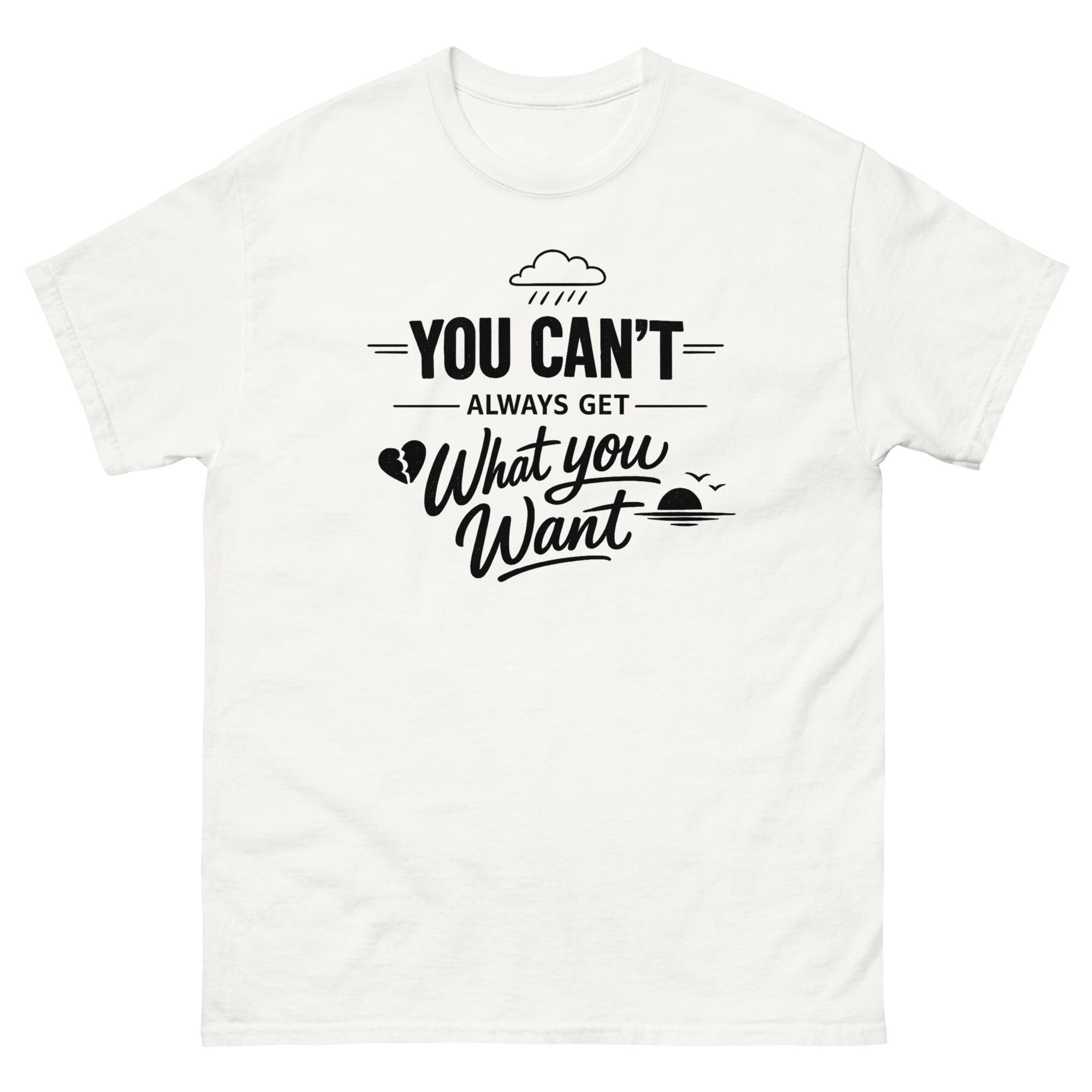 You Cant Always Get What You Want T Shirt design is more than just a lyric print; it’s a visual interpretation of a life lesson. The goal was to capture the song’s essence, the acceptance that sometimes things don’t go as planned, and that’s okay. We included small but meaningful icons to guide the eye and the emotion.