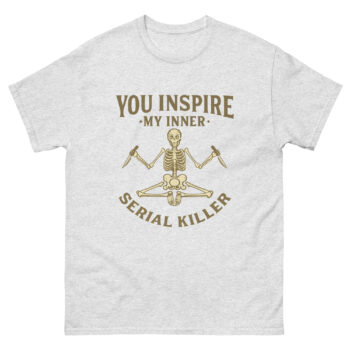 This is the brilliantly twisted philosophy behind the You Inspire My Inner Serial Killer Yoga Pose Skeleton Funny Shirt. This isn’t just another edgy sarcastic quote Halloween t-shirt; it’s a wearable pressure valve for anyone who’s ever had to smile through pure internal rage. It’s for those who believe that sometimes, a little dark humor is the healthiest coping mechanism available.