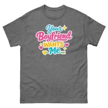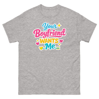 If you’re looking for a shirt that combines humor, retro style, and everyday comfort, this is it. The Your Boyfriend Wants Me T Shirt lets you express a cheeky confidence with a smile. Grab your Your Boyfriend Wants Me t shirt today and add a dose of playful, colorful attitude to your wardrobe.