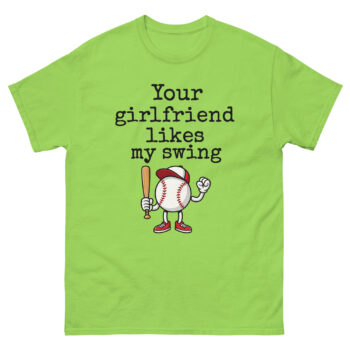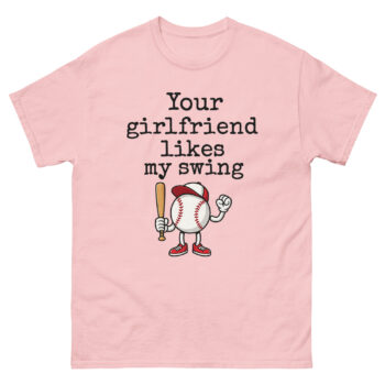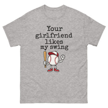 Alright, batters and jokesters! Ever wanted the perfect piece of locker room humor that scores laughs every time? We’ve got your grand slam of style right here. Introducing the Your Girlfriend Likes My Swing Shirt, a hilarious trash talk tee designed for anyone with a competitive spirit and a love for the game. This isn’t just apparel; it’s a statement piece that blends softball and baseball culture with unbeatable wit, making it the ultimate gag gift for baseball boyfriend or a cheeky self-treat.