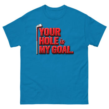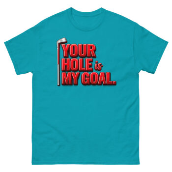 We created Your Hole is My Goal Golf T Shirt for the golfer with a great sense of humor who isn’t afraid to get a laugh from their playing partners. It plays on the classic golf term in a way that’s instantly recognizable and designed to break the ice.